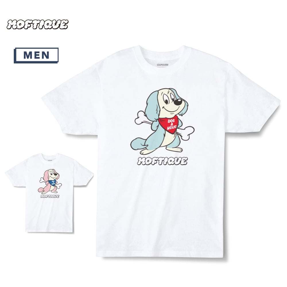 Moftique(モフティック) エントリーモデル 半袖Tシャツ アニマル ポップドッグイラスト 犬 インクジェットプリント 褪せ感 4.0オンス 薄手 トップス カットソー 夏 カジュアル メンズ レディース ユニセックス