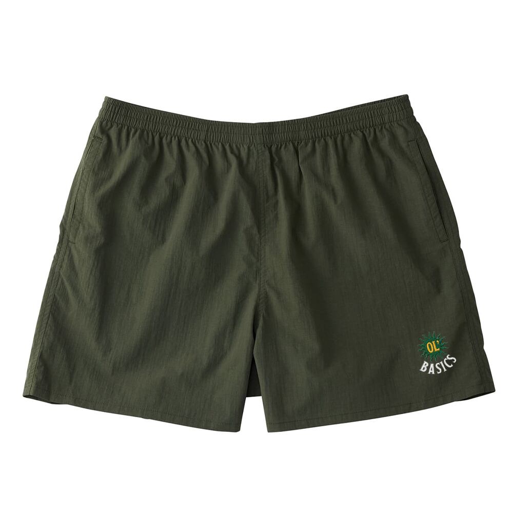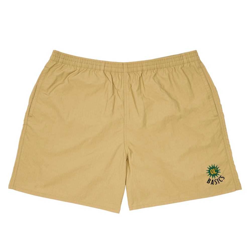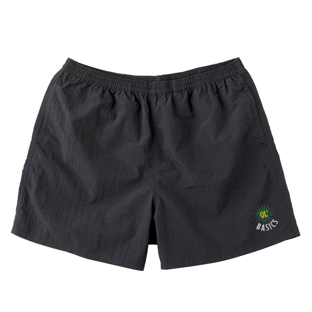 Ol' Basics(オール・ベーシックス) ショートパンツ 太陽モチーフ ロゴ 刺繍 ナイロン 膝上丈 水陸両用 バギーショーツ パンツ アメカジ カジュアル アウトドア レジャー フェス 夏 メンズ レディース ユニセックス