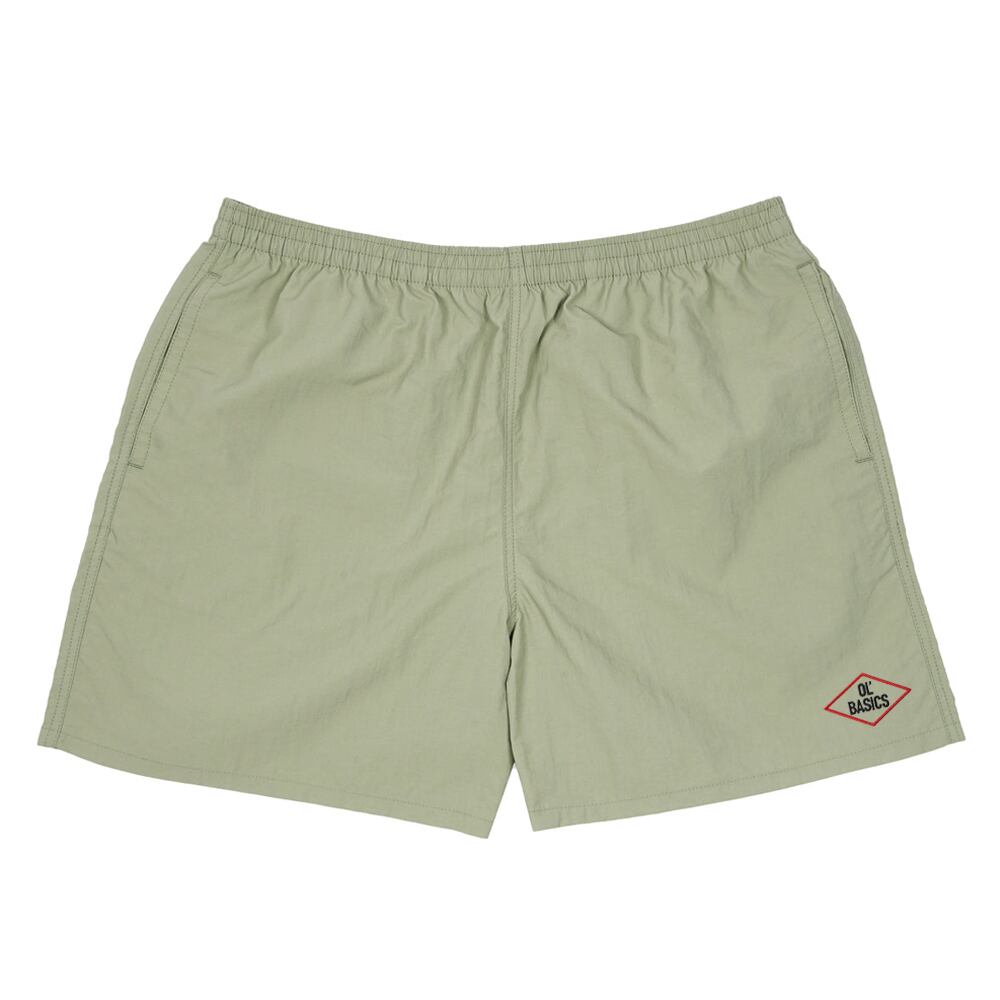 Ol' Basics(オール・ベーシックス) ショートパンツ ダイアモンドフレーム ロゴ 刺繍 ナイロン 膝上丈 水陸両用 バギーショーツ パンツ アメカジ カジュアル アウトドア レジャー フェス 夏 レディース ユニセックス