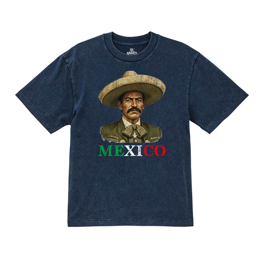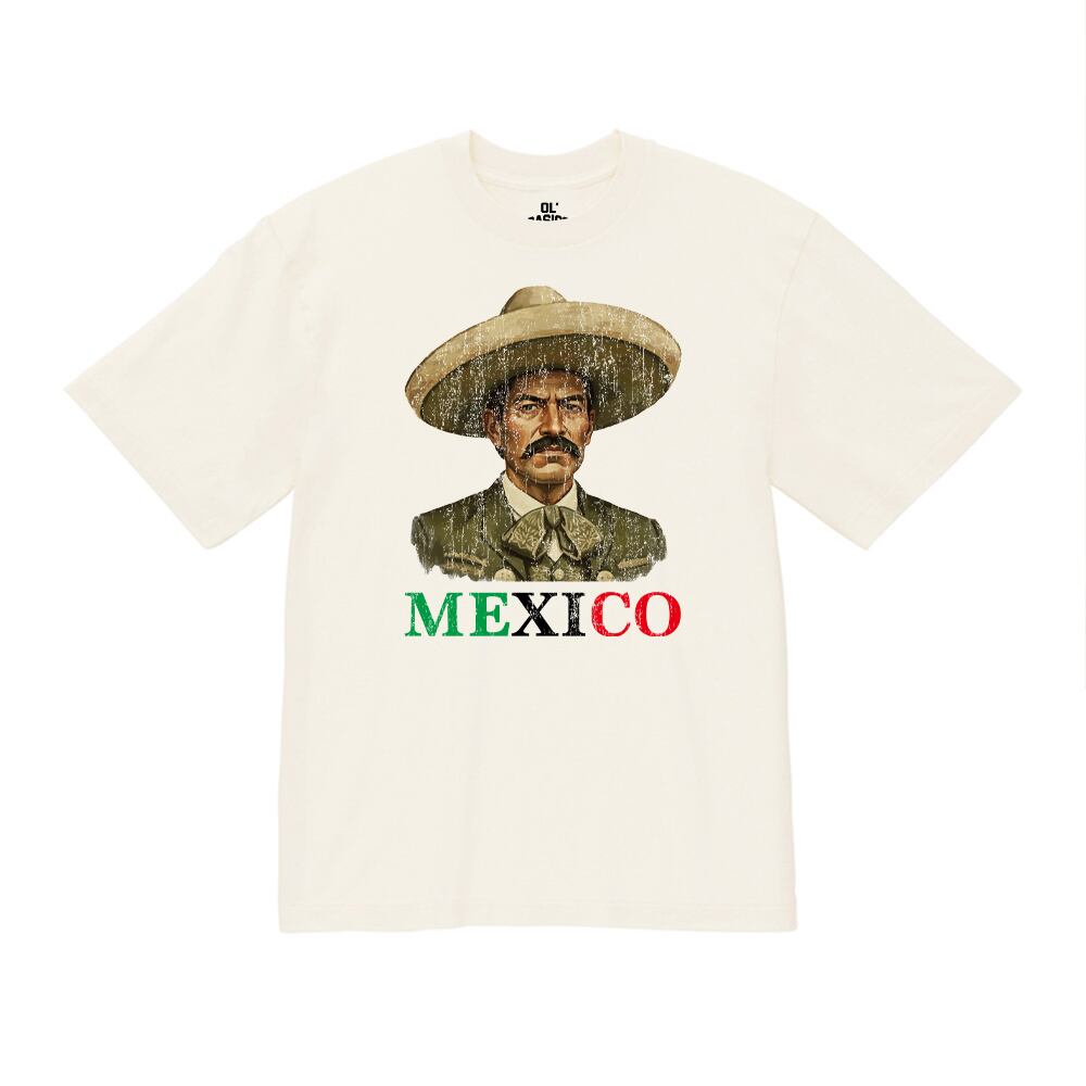 ・プリントはボディーにマッチしたヴィンテージライクなひび割れの、メキシコ革命の英雄エミリアーノ・サパタをプリント