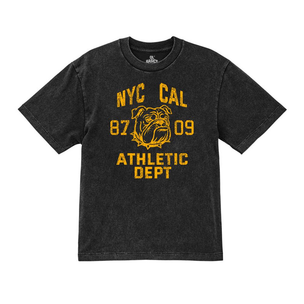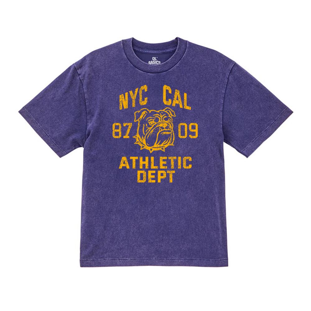 Ol' Basics(オール・ベーシックス) 半袖Tシャツ ヴィンテージライク バイオウォッシュ ブルドッグイラスト ロゴ ひび割れ クラックプリント Tシャツ 半袖 トップス カットソー カレッジ アメカジ カジュアル レディース ユニセックス