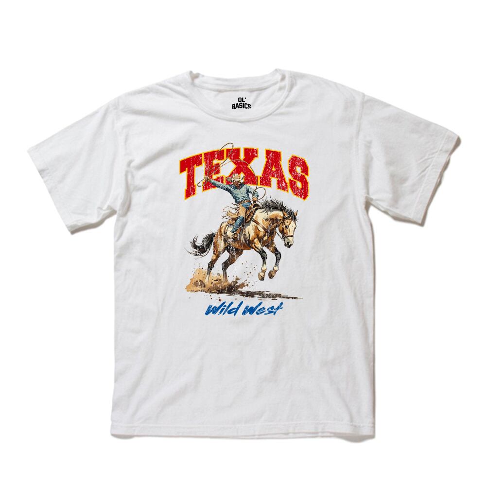 Ol' Basics(オール・ベーシックス) 半袖Tシャツ ヴィンテージライク ガーメントダイ カウボーイイラスト ひび割れ クラックプリント Tシャツ 半袖 トップス カットソー アメカジ カジュアル メンズ レディース ユニセックス