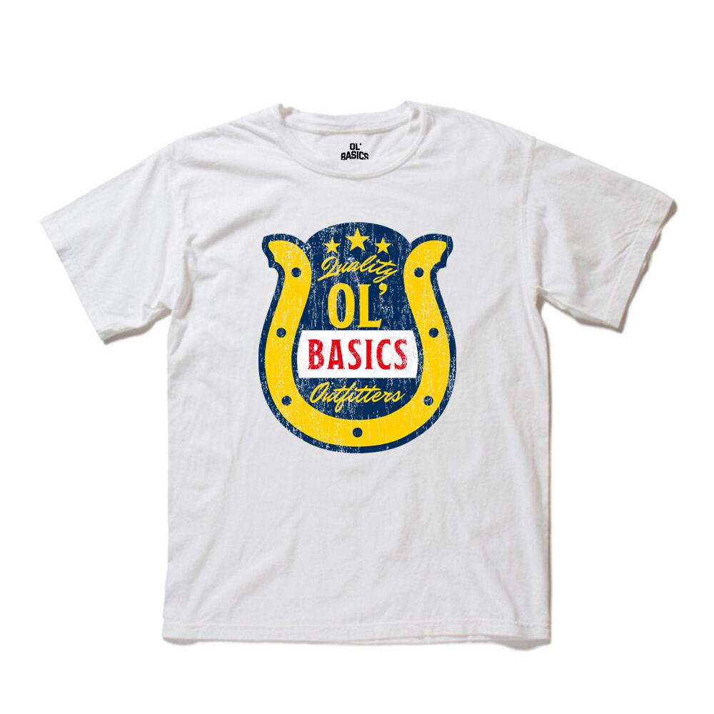 Ol' Basics(オール・ベーシックス) 半袖Tシャツ ヴィンテージライク ガーメントダイ ホースシューイラスト ひび割れ クラックプリント Tシャツ 半袖 トップス カットソー アメカジ カジュアル レディース ユニセックス