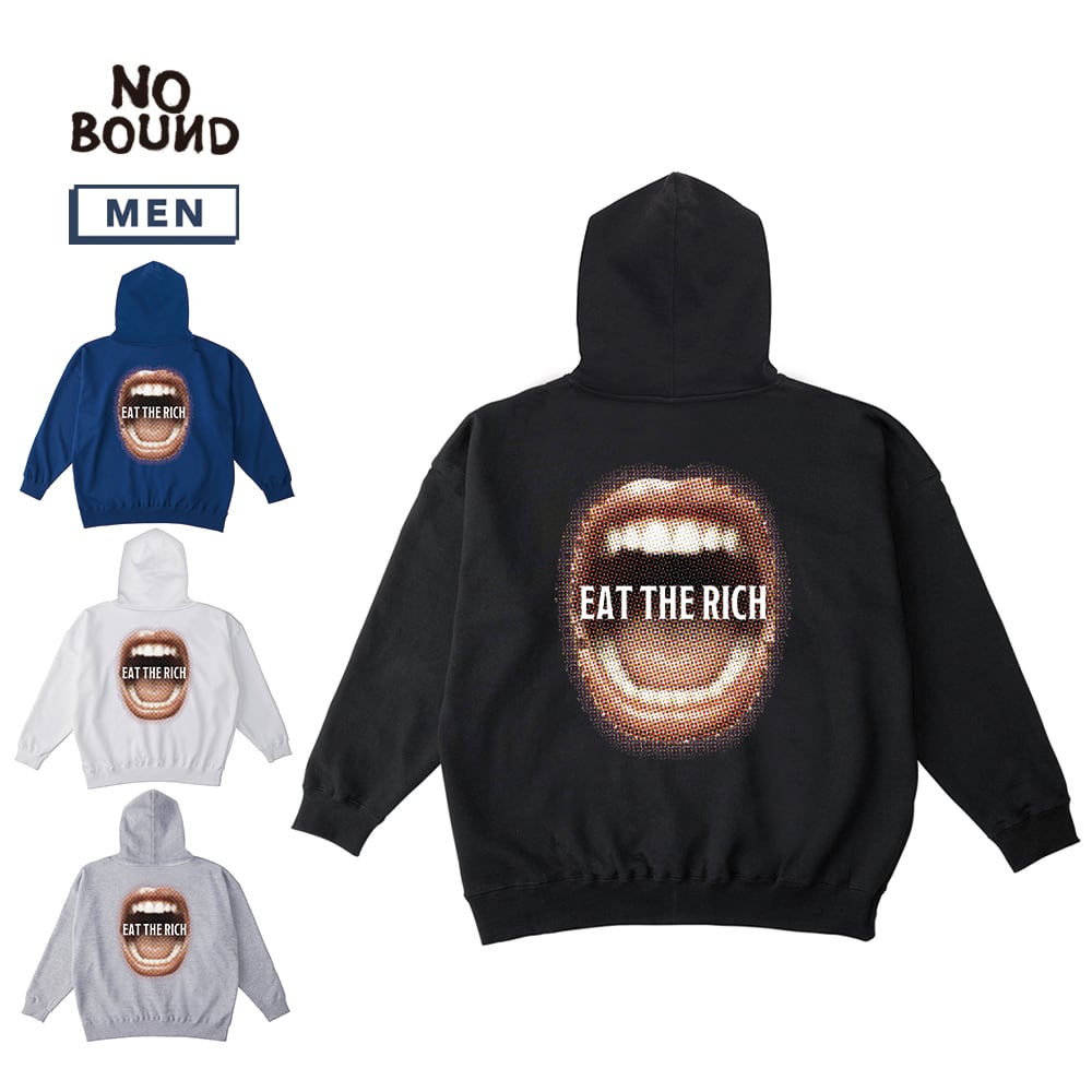 NOBOUND(ノーバウンド) プルパーカー メンズ レディース ユニセックス スウェット マウスメッセージロゴプリント ビッグシルエット プルオーバーパーカー フーディー トップス ストリート カジュアル