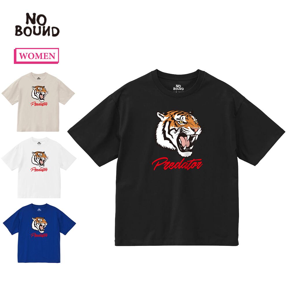 NOBOUND(ノーバウンド) 半袖Tシャツ レディース ユニセックス タイガーイラスト プリント ビッグシルエット Tシャツ 半袖 トップス カットソー ストリート カジュアル