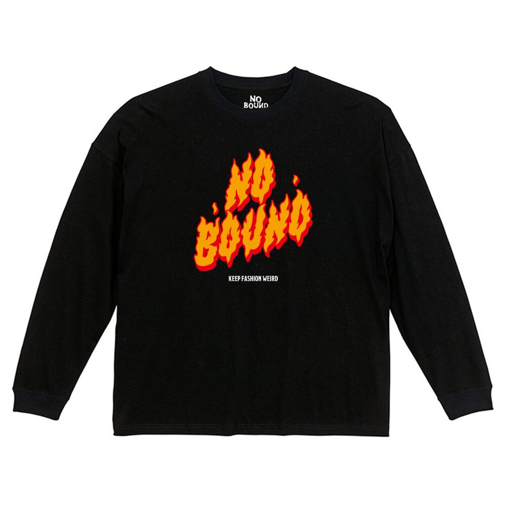 NOBOUND(ノーバウンド) 長袖Tシャツ レディース ユニセックス ファイヤーロゴ プリント ビッグシルエット Tシャツ 長袖 トップス カットソー ストリート カジュアル