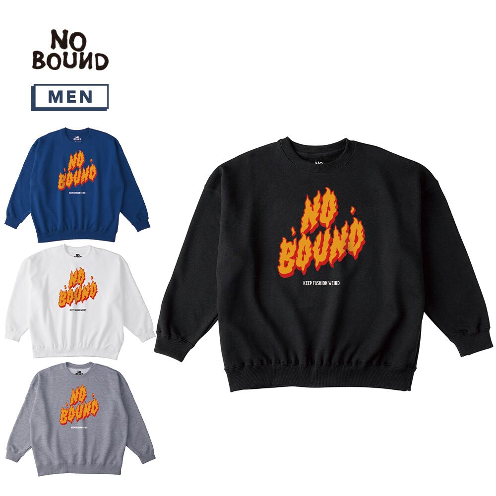 NOBOUND(ノーバウンド) トレーナー メンズ レディース ユニセックス スウェット ファイヤーロゴ プリント ビッグシルエット スウェットシャツ スエット プルオーバー トップス ストリート カジュアル