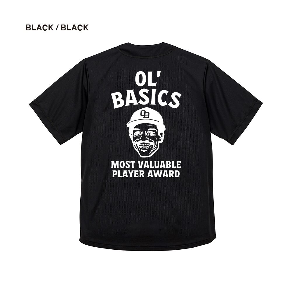 Ol' Basics(オール・ベーシックス) ベースボールシャツ ドライ イラスト ロゴ バックプリント 吸水速乾 UPF20 半袖カジュアルシャツ トップス アメカジ スポーツ カジュアル メンズ レディース ユニセックス