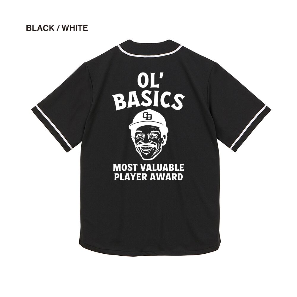 Ol' Basics(オール・ベーシックス) ベースボールシャツ ドライ イラスト ロゴ バックプリント 吸水速乾 UPF20 半袖カジュアルシャツ トップス アメカジ スポーツ カジュアル レディース ユニセックス