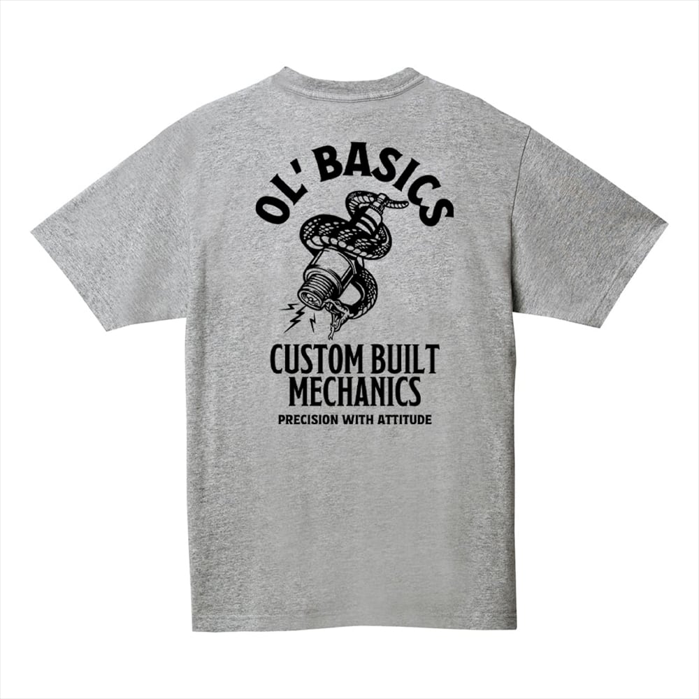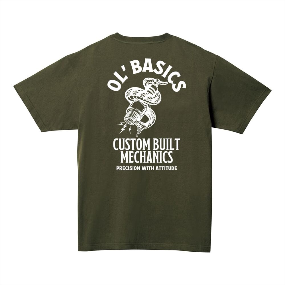 Ol' Basics(オール・ベーシックス) 半袖Tシャツ スパークプラグ 蛇 イラスト ロゴ バックプリント ポケットTシャツ 半袖 トップス カットソー アメカジ カジュアル メンズ レディース ユニセックス