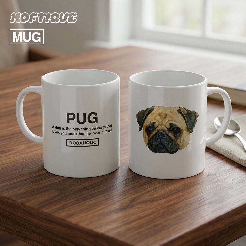 Moftique(モフティック) マグカップ アニマル ペット パグ 犬 ドッグ 昇華転写プリント 310ml 陶器 ギフト ペット