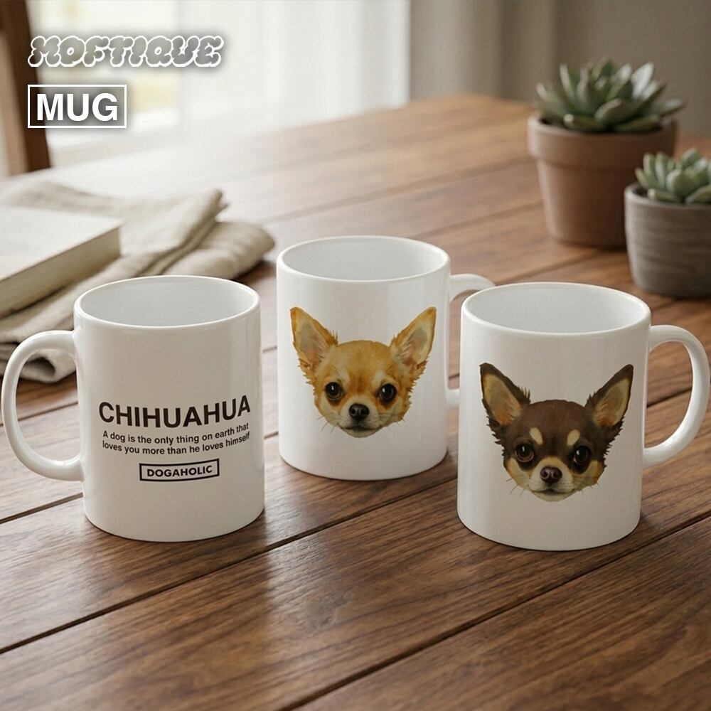 Moftique(モフティック) マグカップ アニマル ペット チワワ ブラック ドッグ 犬 昇華転写プリント 310ml 陶器 ギフト ペット