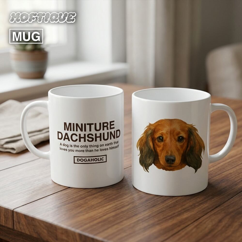 Moftique(モフティック) マグカップ アニマル ペット ミニチュアダックスフンド ドッグ 犬 昇華転写プリント 310ml 陶器 ギフト ペット