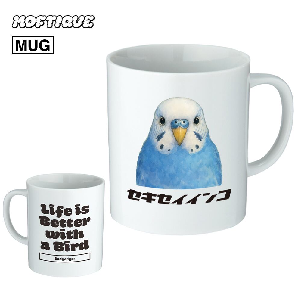Moftique(モフティック) マグカップ アニマル ペット セキセイインコ ブルー系 鳥類 昇華転写プリント 310ml 陶器 ギフト