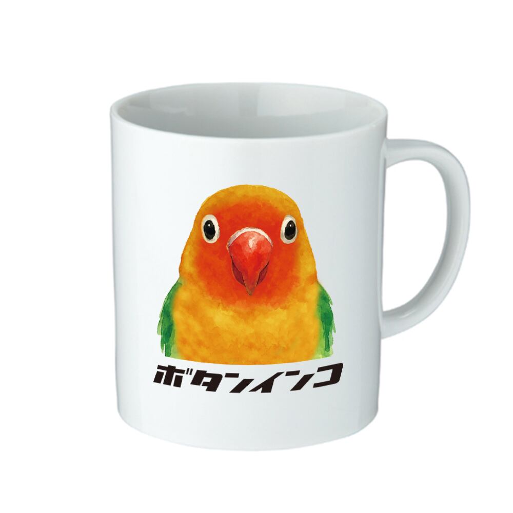 ボタンインコ ノーマル プリント マグカップ。